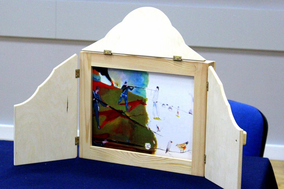 Towarzyszył nam niestrudzony propagator kamishibai na Śląsku, arteterapeuta Piotr Zatorski, który przedstawił metodę pracy z kamishibai w arteterapii.