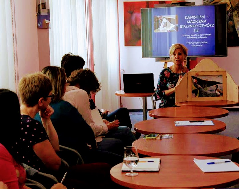 „Kamishibai równa się kreatywność – to tylko jedna z zalet papierowego teatru, która sprawia, że po magiczną skrzynkę sięgają zarówno dzieci jak i dorośli. Warsztaty z udziałem bibliotekarzy z Krosna i powiatu krośnieńskiego, pokazujące jak papierowy teatr wykorzystać do prowadzenia ciekawych i rozwijających zajęć w bibliotece, prowadziła w dniu 27 czerwca 2018 roku Zofia Piątkowska-Wolska, założycielka Wydawnictwa Tibum, które od 2012 roku popularyzuje kamishibai w Polsce – wydając m.in. bajki w formie ilustrowanych kart narracyjnych, gotowych do opowiadania historii z wykorzystaniem drewnianej skrzynki.(…)”